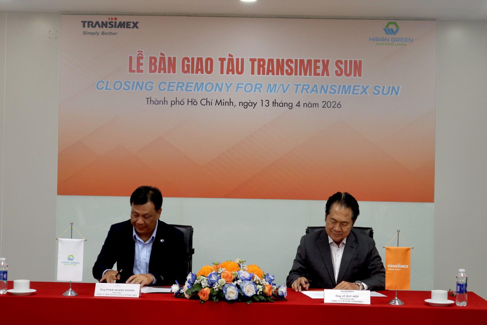 Thực hiện chiến lược cơ cấu lại dịch vụ của Công ty, Hội đồng quản trị Công ty Cổ phần Transimex đã quyết định chuyển nhượng con tàu container do Transimex sở hữu mang tên Transimex Sun cho Công ty TNHH Hải An Green Shipping Lines. Lễ bàn giao tàu Transimex Sun được tổ chức ngày 13/04/2026, tại văn phòng Công ty Cổ phần Transimex và cùng thời gian tại Phao SSV01 – Khu vực luồng hàng hải sông Sài Gòn.