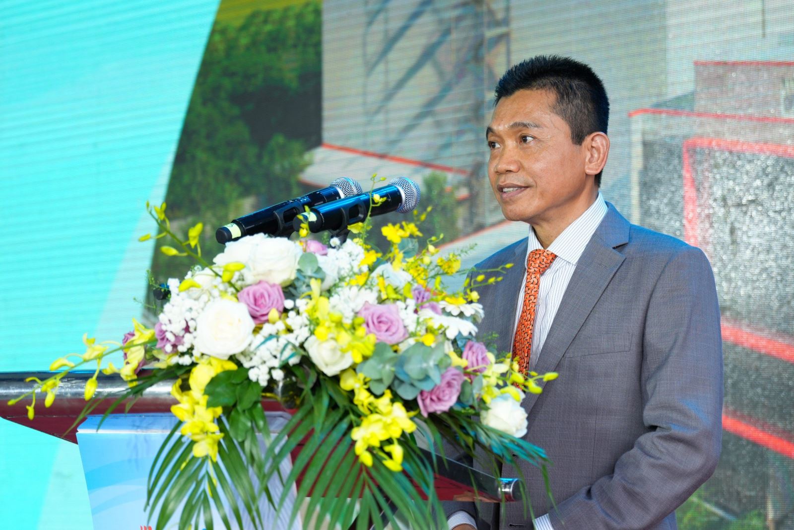 Mr. Nguyễn Hoàng Hải, Deputy General Director of Transimex Joint Stock Company and Director of Long An Logistics Joint Stock Company, spoke at the inauguration ceremony of phase 1 of the Long An cold storage project.