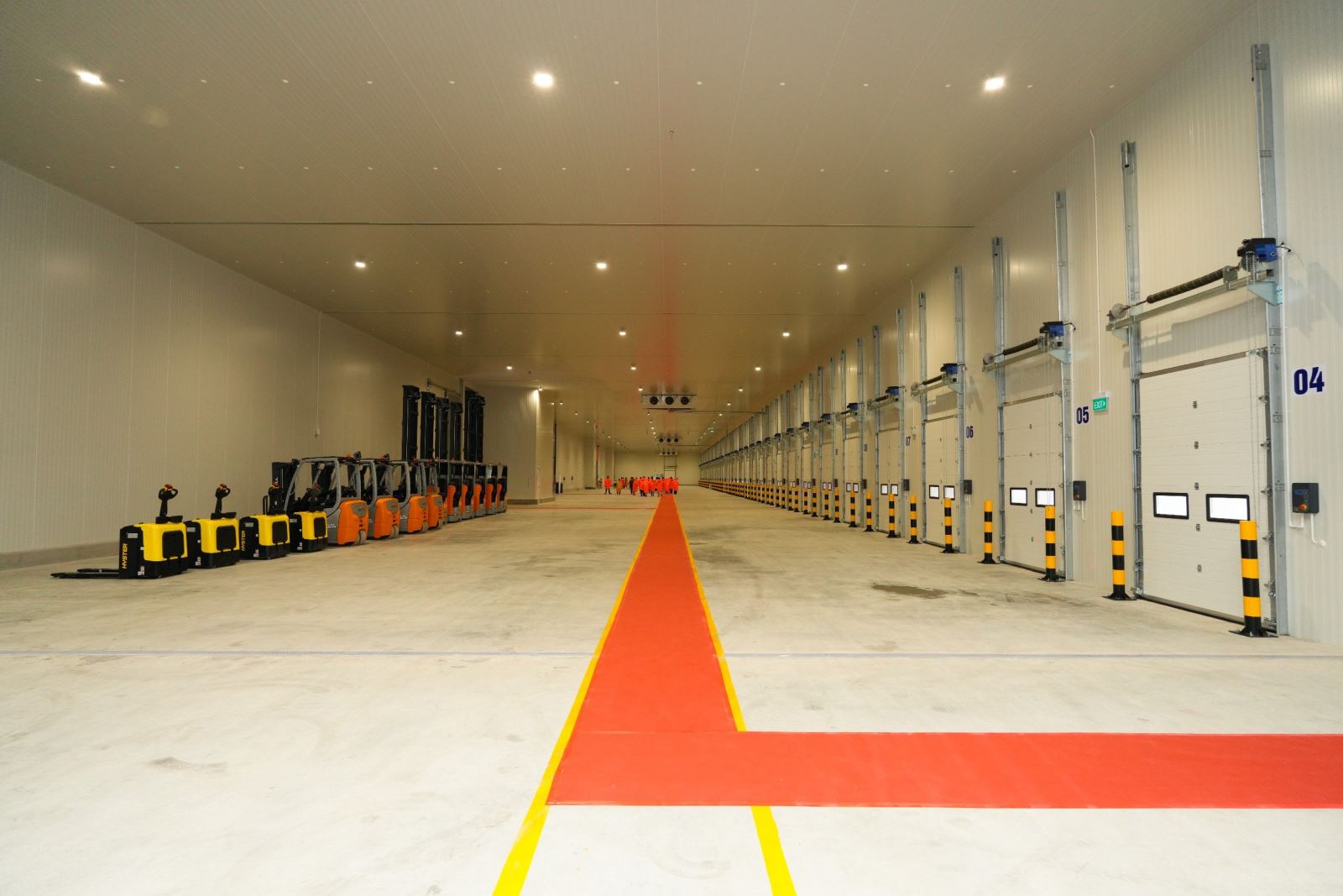 Long An cold storage has a total area of 29,000 square meters, a storage capacity of 56,000 pallets, including 1 automatic freezer warehouse and 2 freezer warehouses with a temperature range of minus 18 degrees Celsius to minus 22 degrees Celsius; 2 cool warehouses ranging 2 degrees Celsius to 6 degrees Celsius; and 3 room temperature warehouses. This warehousing system, accompanied with a deep freezing area, a goods preparation area, 46 dock doors, and a large yard capacity for trucks and tractors to enter and exit while transporting goods, is well-equipped for handling all types of goods requiring temperature-specific preservation.