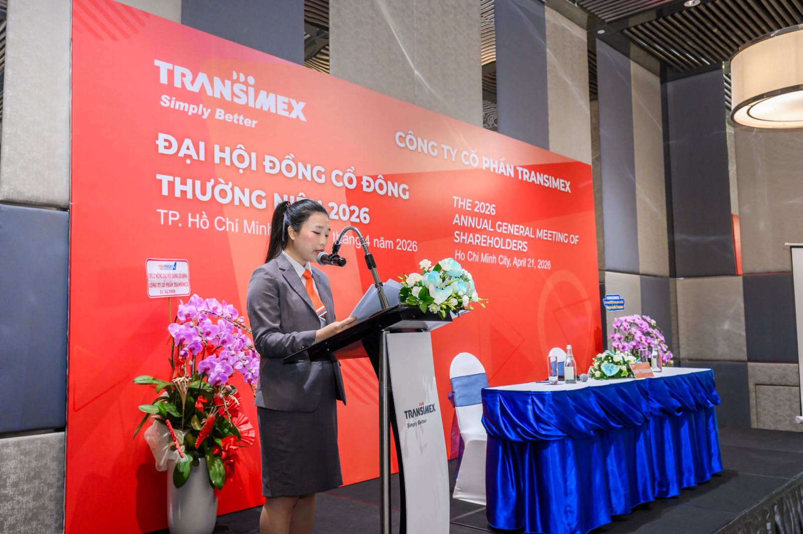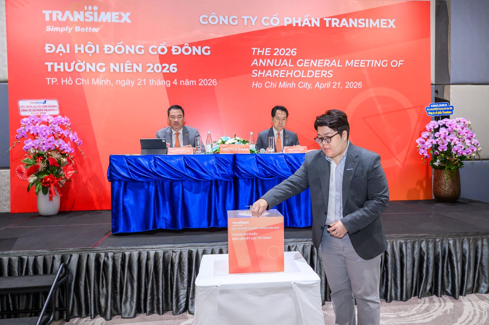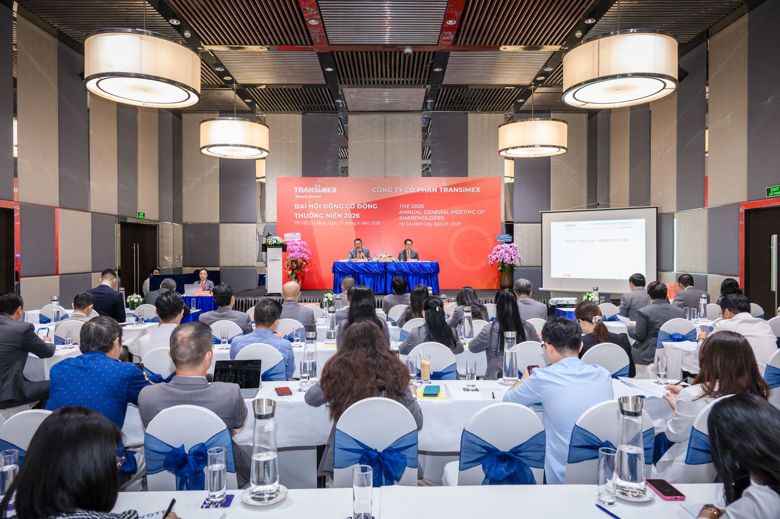 Ngày 21/04/2026, tại Khách sạn Novotel Saigon Centre, 167 Hai Bà Trưng, Phường Xuân Hòa, Thành phố Hồ Chí Minh, Việt Nam, Công ty Cổ phần Transimex đã tổ chức thành công Đại hội đồng Cổ đông thường niên năm 2026.