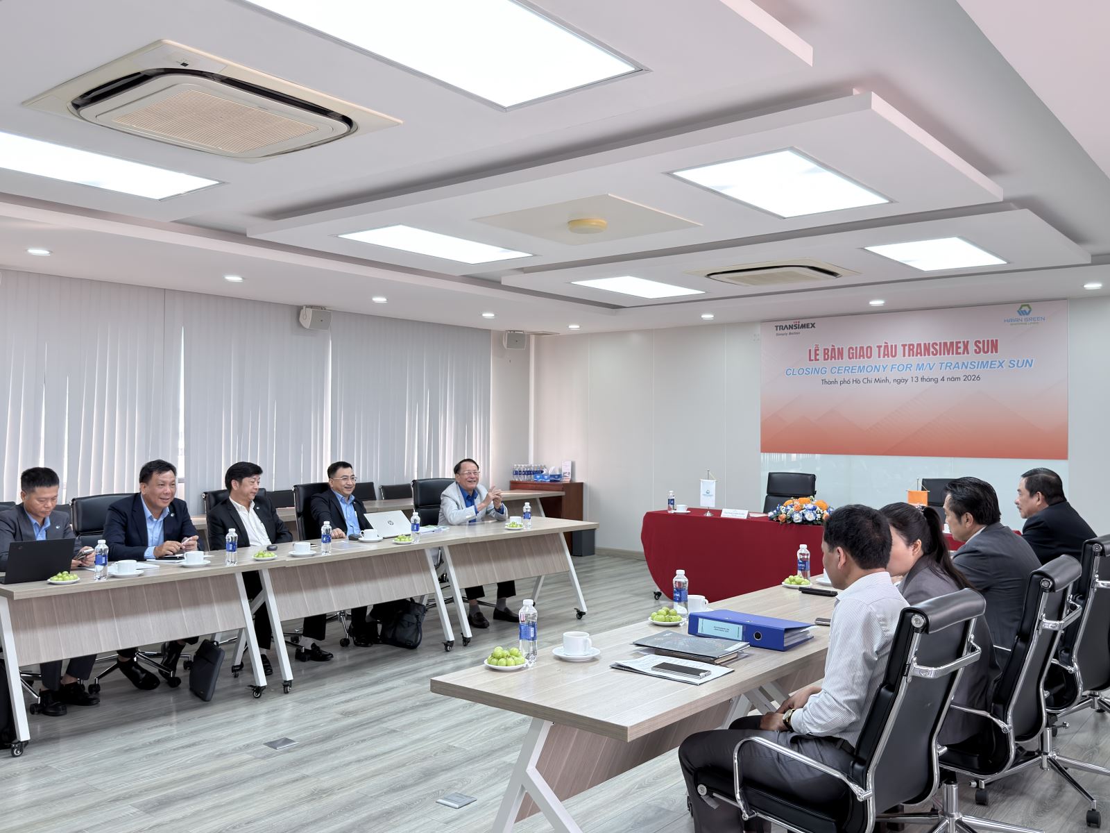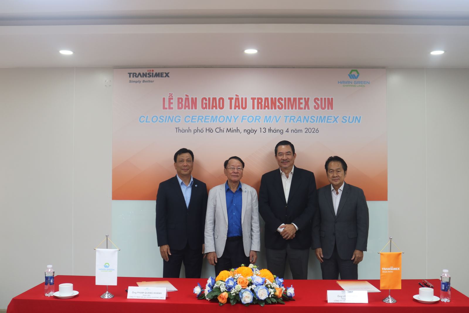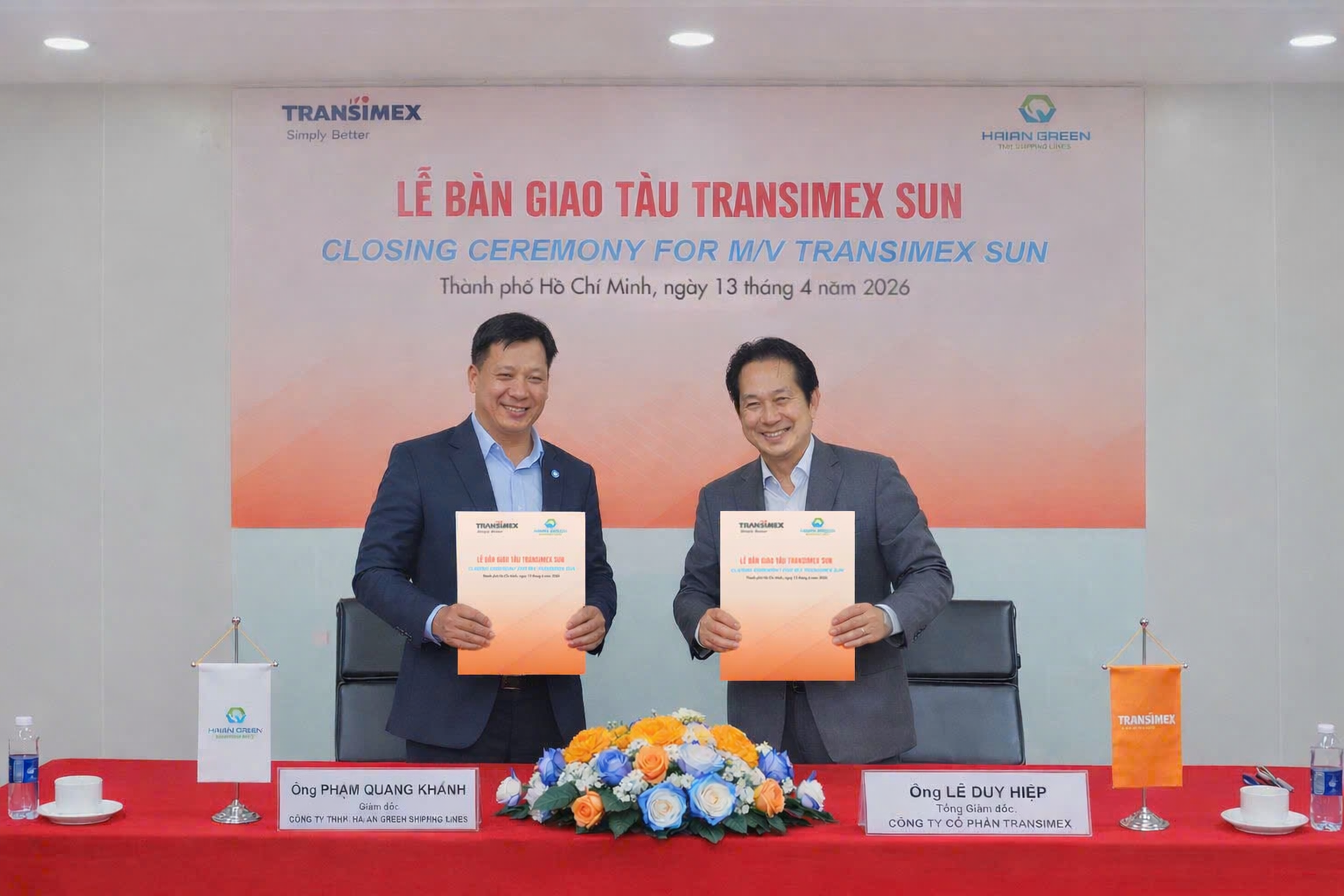 Thực hiện chiến lược cơ cấu lại dịch vụ của Công ty, Hội đồng quản trị Công ty Cổ phần Transimex đã quyết định chuyển nhượng con tàu container do Transimex sở hữu mang tên Transimex Sun cho Công ty TNHH Hải An Green Shipping Lines. Lễ bàn giao tàu Transimex Sun được tổ chức ngày 13/04/2026, tại văn phòng Công ty Cổ phần Transimex và cùng thời gian tại Phao SSV01 – Khu vực luồng hàng hải sông Sài Gòn.