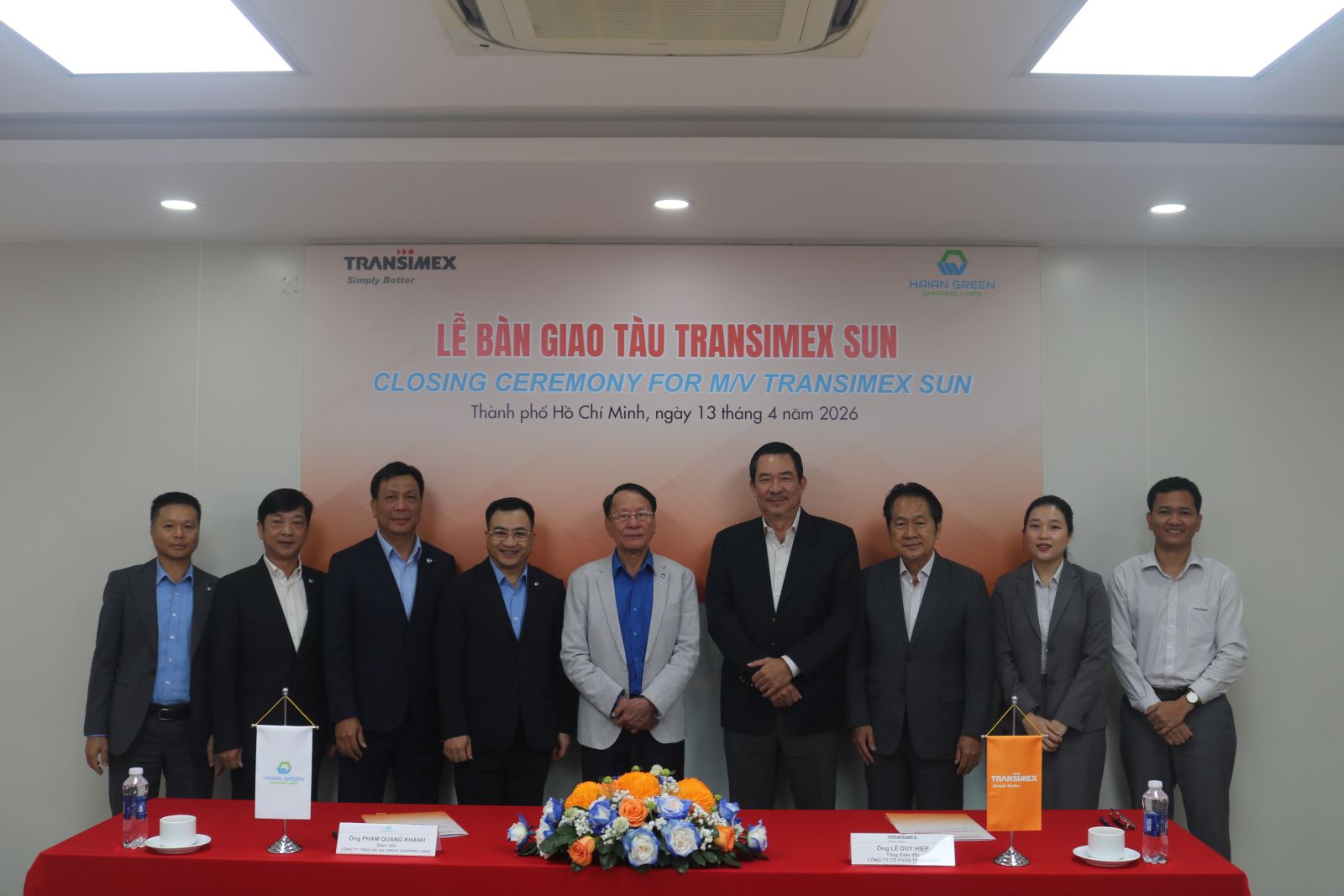 Tham dự buổi lễ bàn giao, phía Công ty Cổ phần Transimex có Ông Bùi Tuấn Ngọc - Chủ tịch Hội đồng Quản trị, Ông Lê Duy Hiệp - Tổng Giám đốc, Ông Lê Phúc Tùng – Phó Tổng giám đốc, Bà Nguyễn Thị Thái Nhi - Chánh Văn phòng Hội đồng Quản trị và Ông Huỳnh Văn Toàn - Phó Chánh Văn phòng Hội đồng Quản trị. Đại diện phía Công ty TNHH Hải An Green Shipping Lines có Ông Vũ Ngọc Sơn – Cố vấn cấp cao Công Ty Cổ phần Vận Tải & Xếp Dỡ Hải An (HATC), Ông Nguyễn Ngọc Tuấn – Tổng Giám Đốc HATC, Ông Phạm Quang Khánh - Giám đốc Công Ty TNHH Hải An Green Shipping Lines cùng các thành viên Ban Lãnh đạo công ty.
