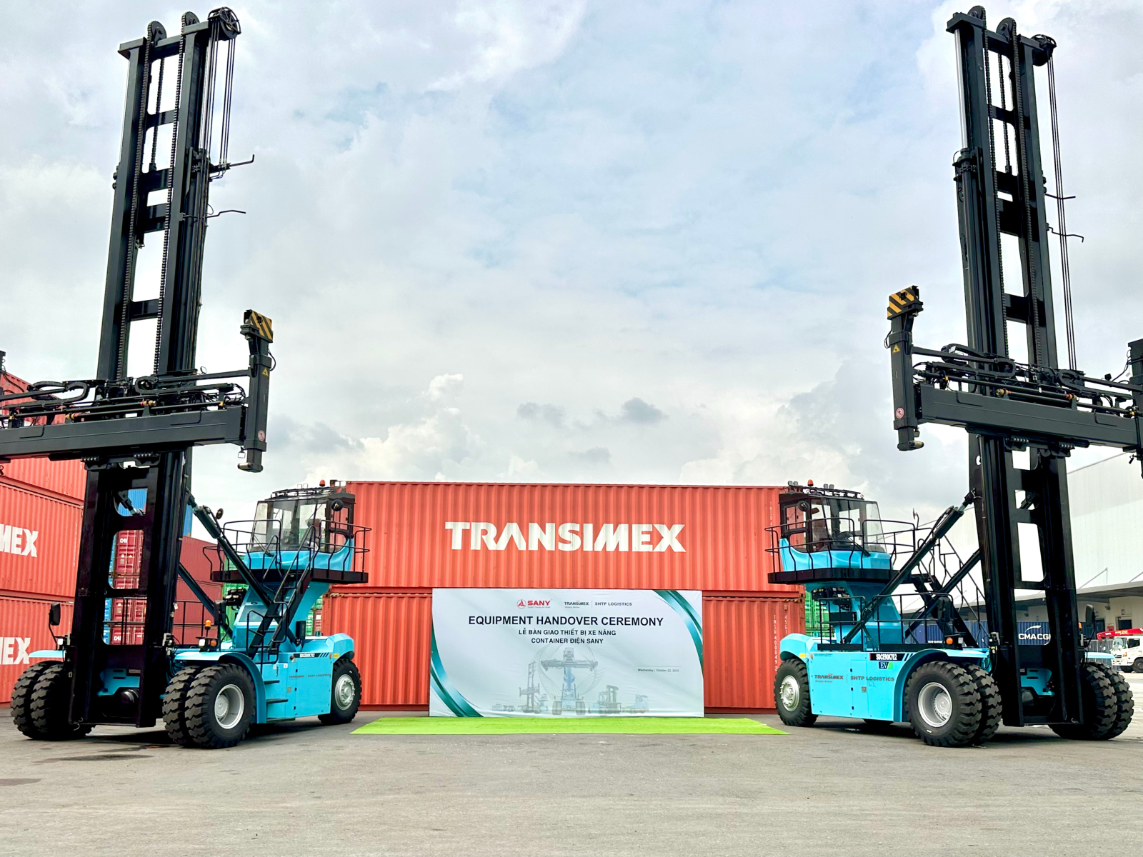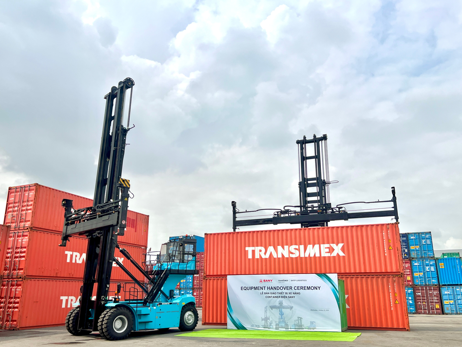 Sáng ngày 22/10/2025, Công ty Trách nhiệm hữu hạn MTV Transimex Hi Tech Park Logistics (Công ty con thuộc Transimex Group) đã tiếp nhận và đưa vào vận hành 02 xe nâng container chạy bằng pin điện.